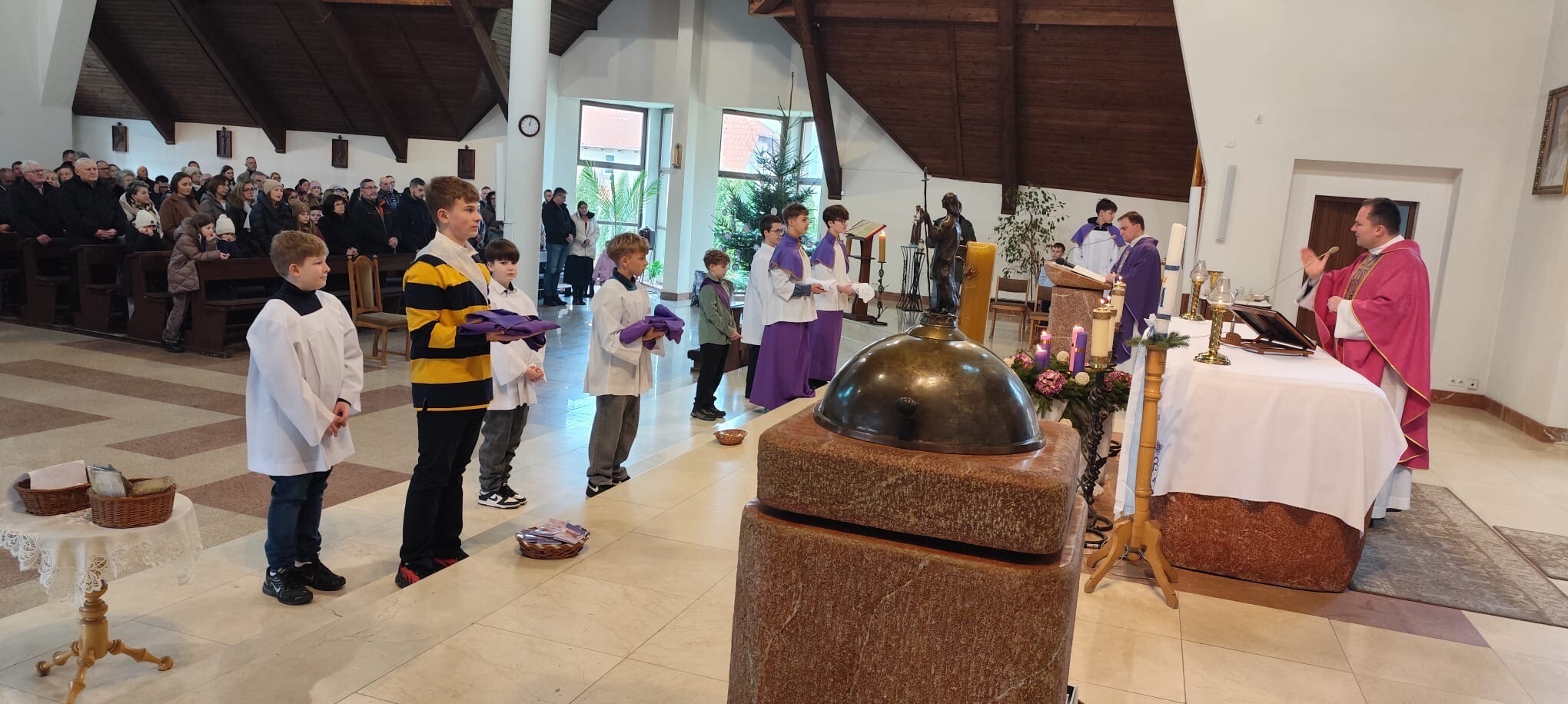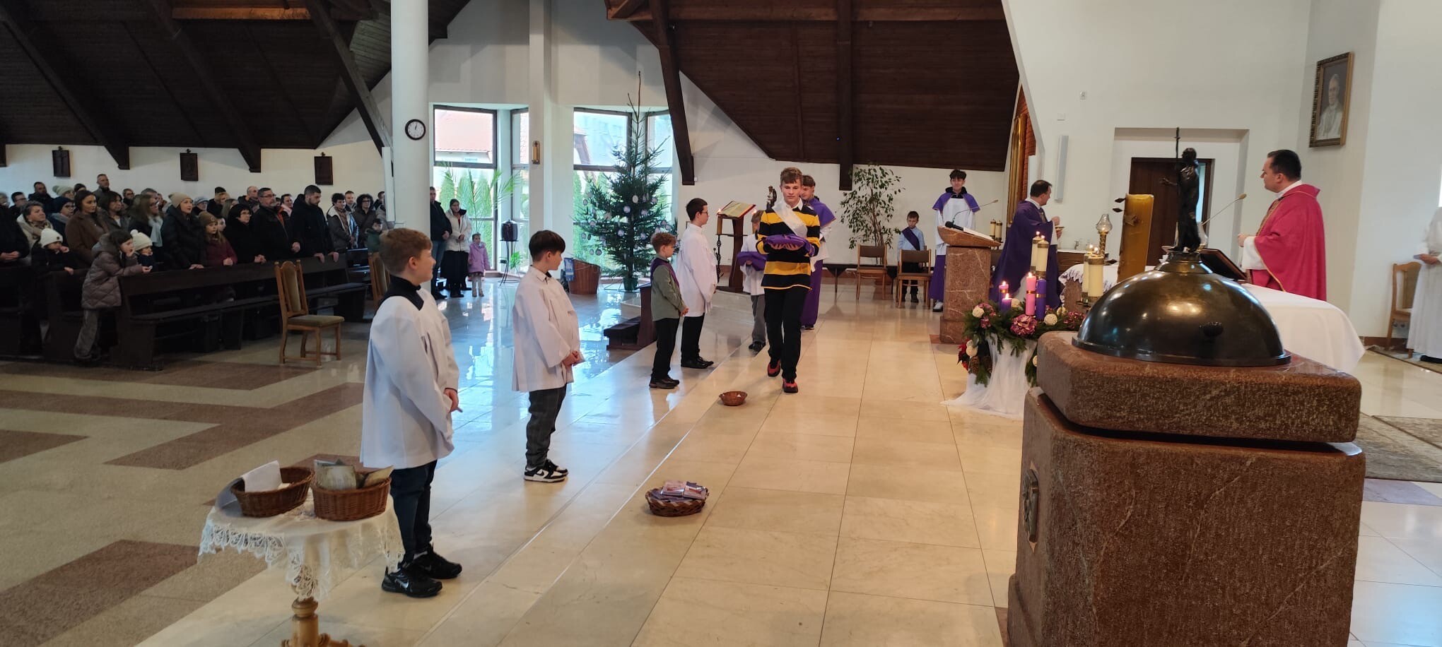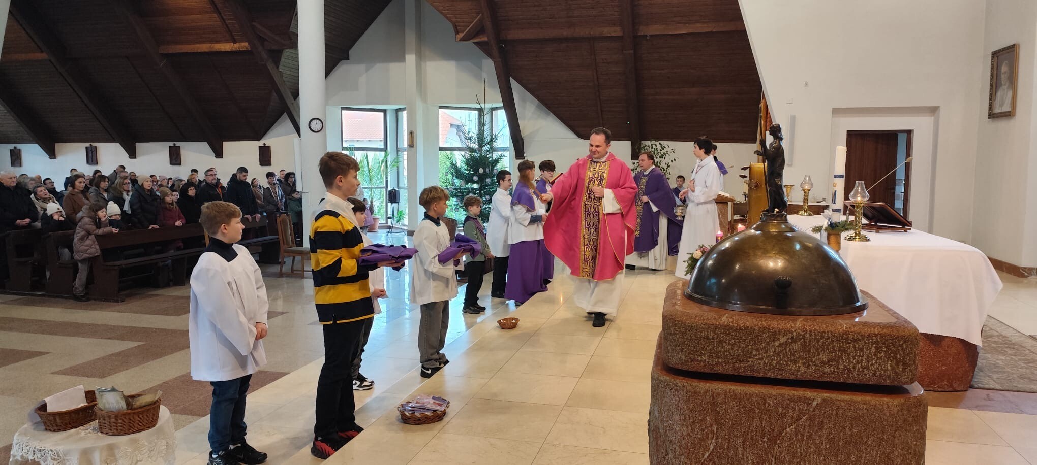 "Służcie Panu z weselem"(Ps 100,2). W minioną niedzielę 14 grudnia 2025 roku w naszej parafii odbyła się uroczystość przyjęcia awansów przez ministrantów. Wydarzenie to było ważnym momentem dla całej wspólnoty parafialnej, a szczególnie dla Liturgicznej Służby Ołtarza.
