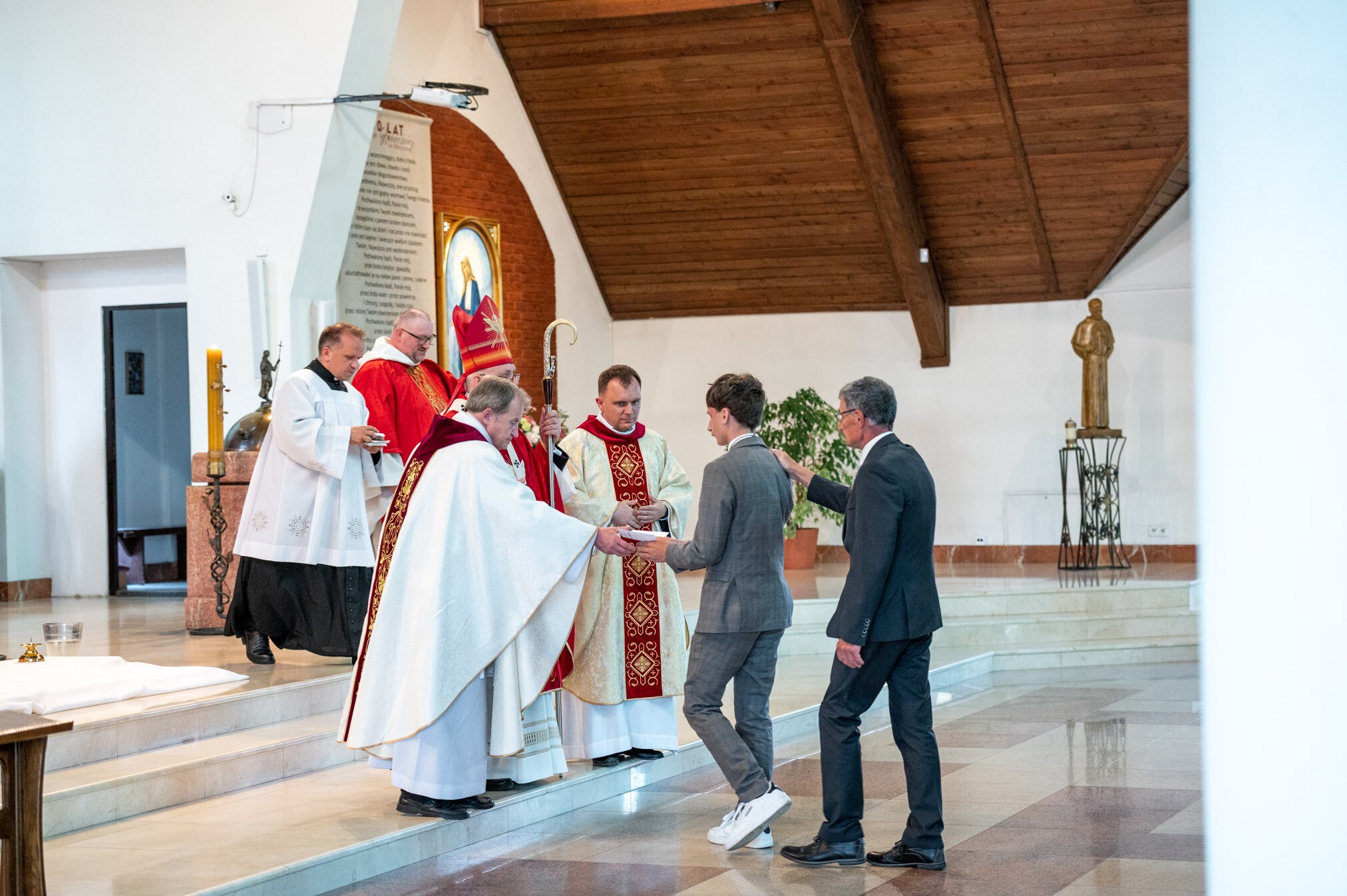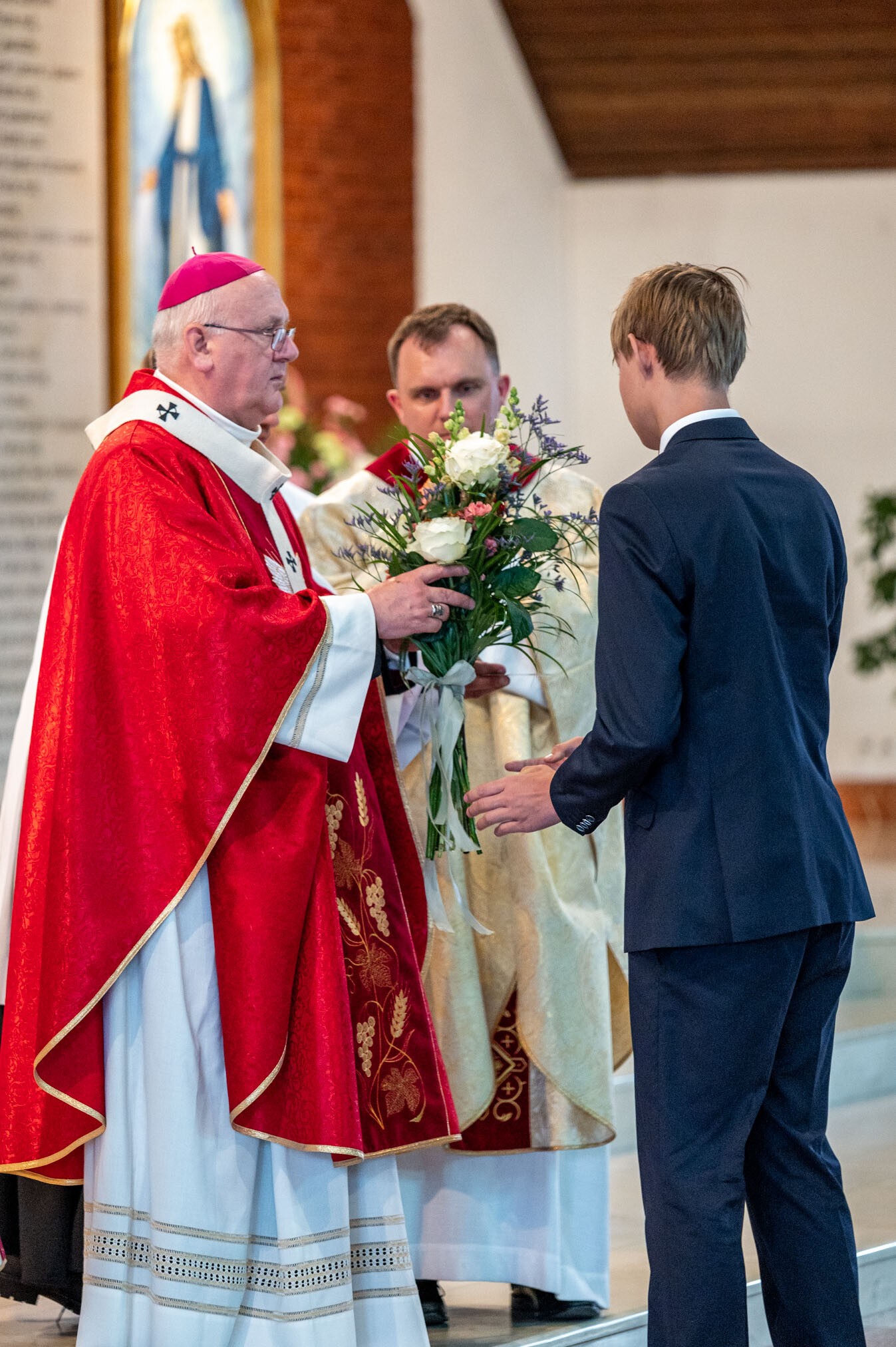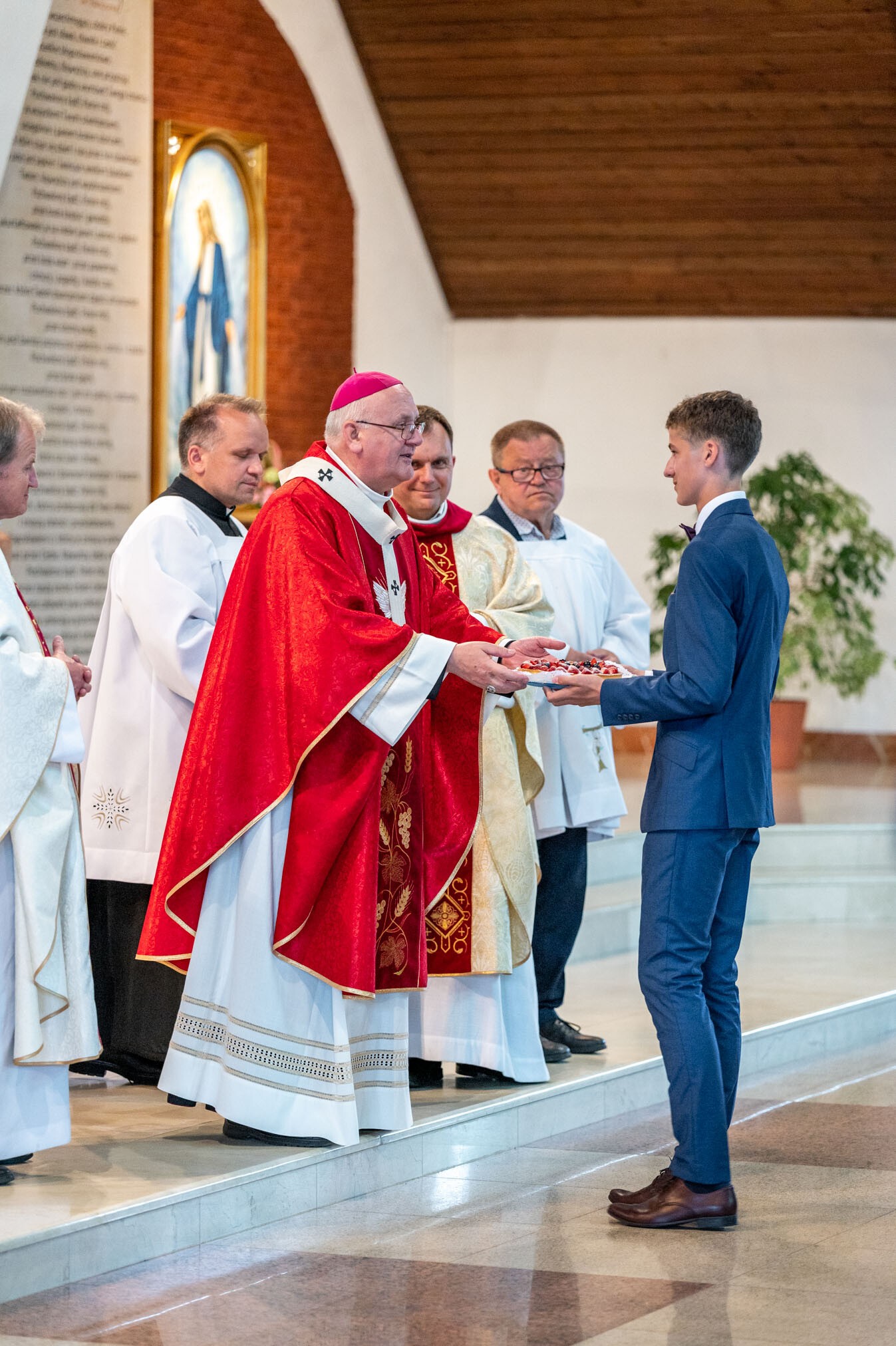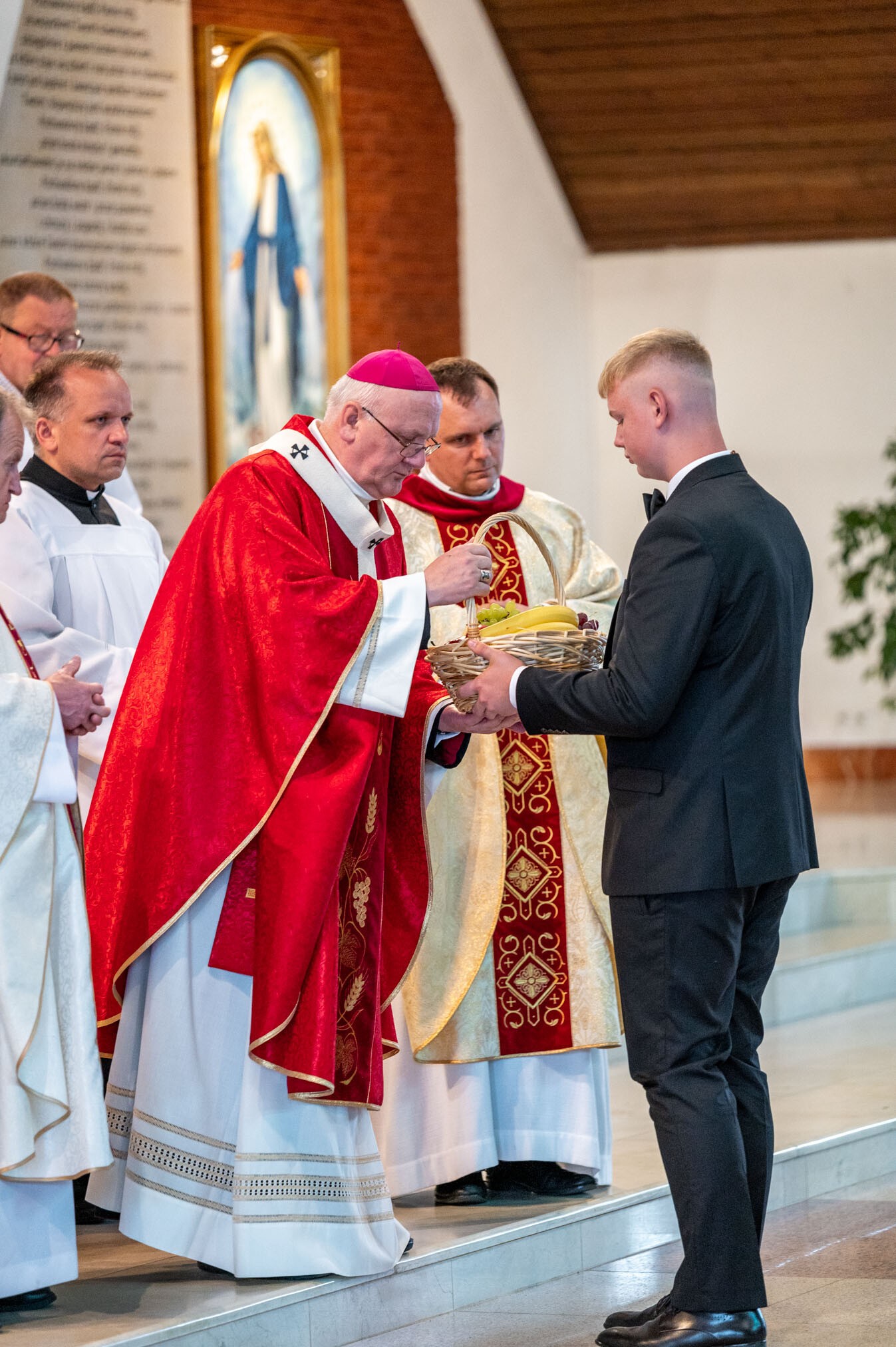 Mszy Świętej przewodniczył i Sakramentu Bierzmowania udzielił Abp Józef Górzyński. Do przyjęcia tego Sakramentu młodzież przygotowywała się przez cały rok poprzez comiesięczne niedzielne Msze Święte o godz. 18.00 i spotkania w małych grupach formacyjnych.