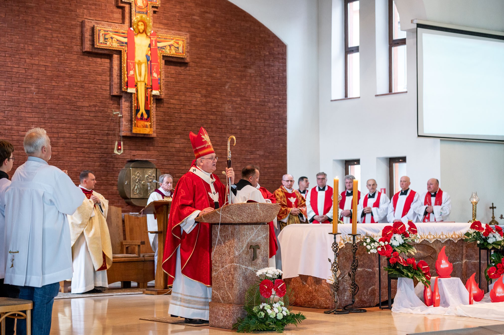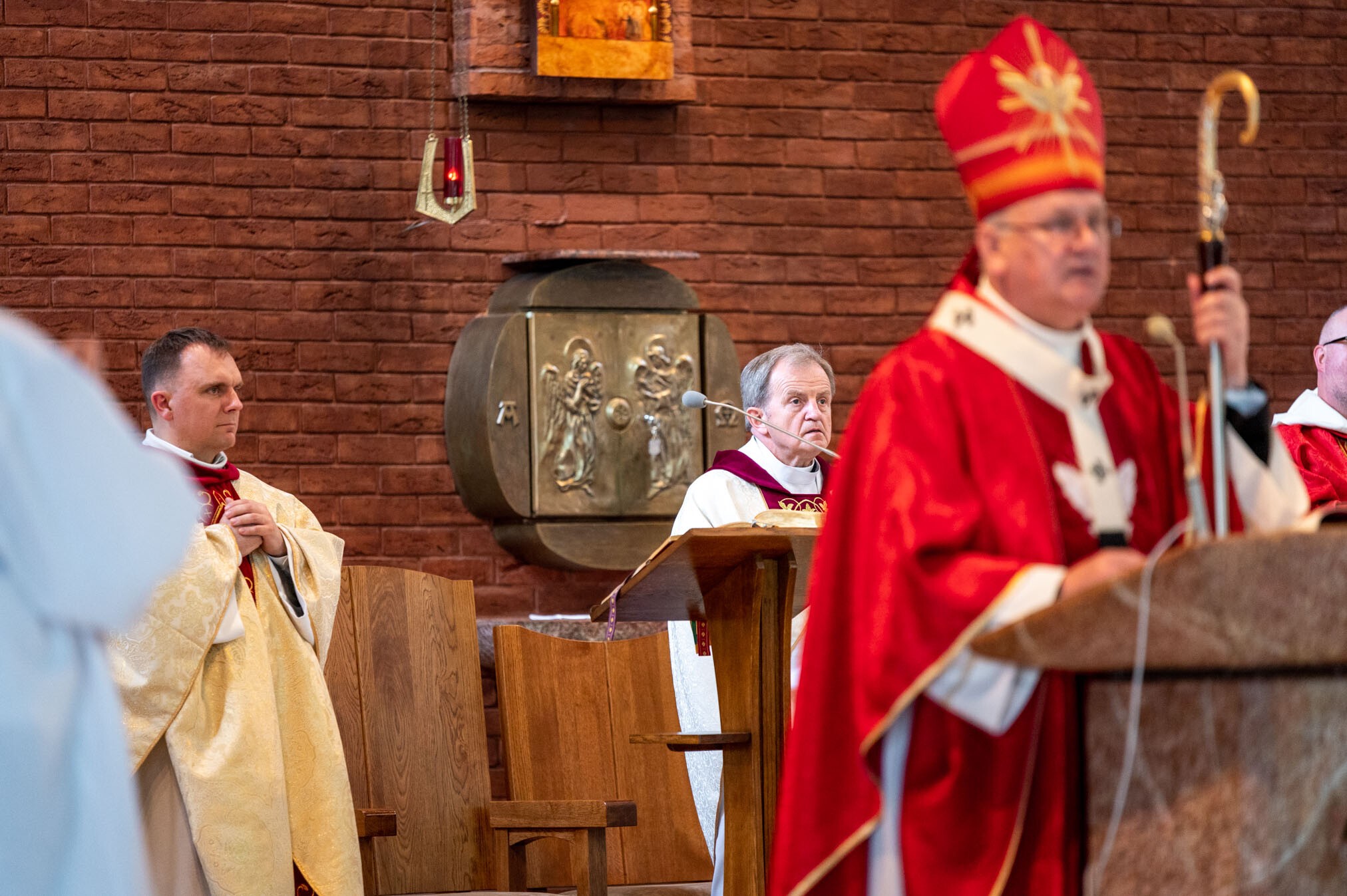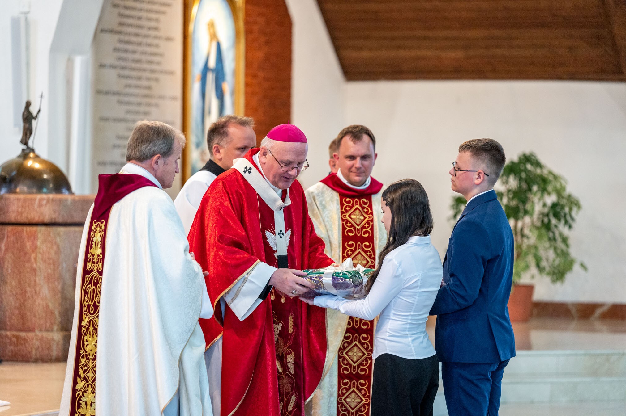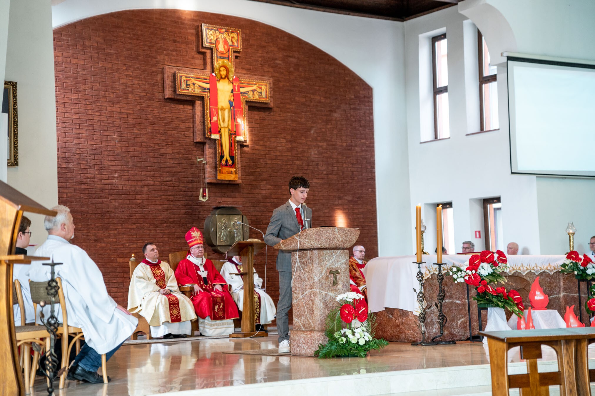 Mszy Świętej przewodniczył i Sakramentu Bierzmowania udzielił Abp Józef Górzyński. Do przyjęcia tego Sakramentu młodzież przygotowywała się przez cały rok poprzez comiesięczne niedzielne Msze Święte o godz. 18.00 i spotkania w małych grupach formacyjnych.